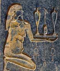 En juillet, au moment du lever héliaque de l'étoile Sirius, Hâpy sort de sa grotte et les eaux du Nil gonflent.